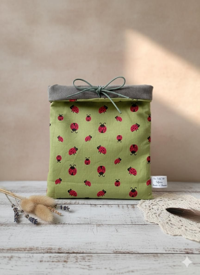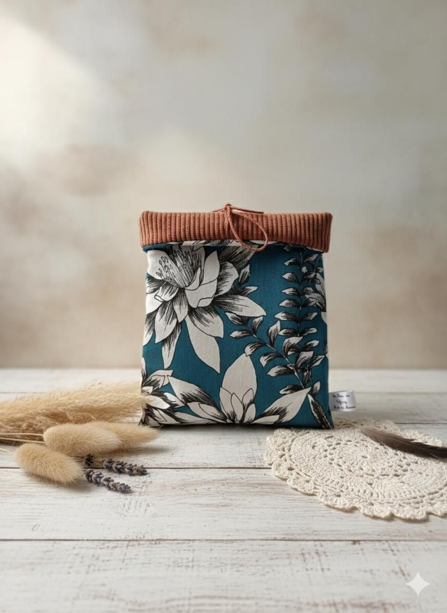 Intérieur en velours côtelé, extérieur en tissu coton à motifs.